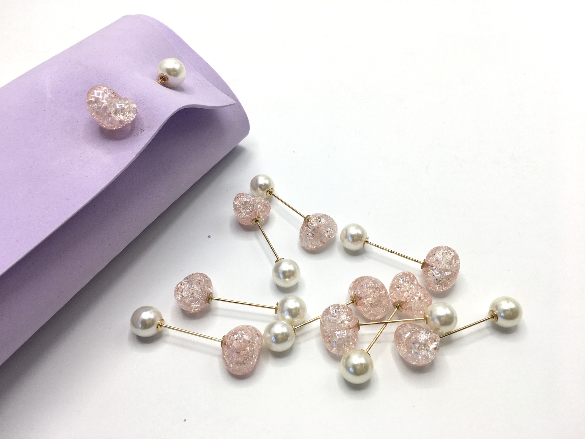 Булавка Кристалл Розовая сердце Золотое 10 шт.