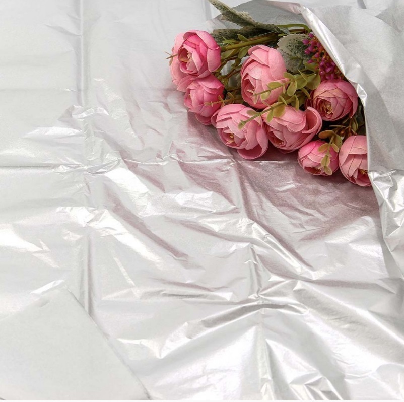 Бумага в листах "Тишью" Размер: 50*66 В упаковке : 10 листов Цвет: Серебристый
