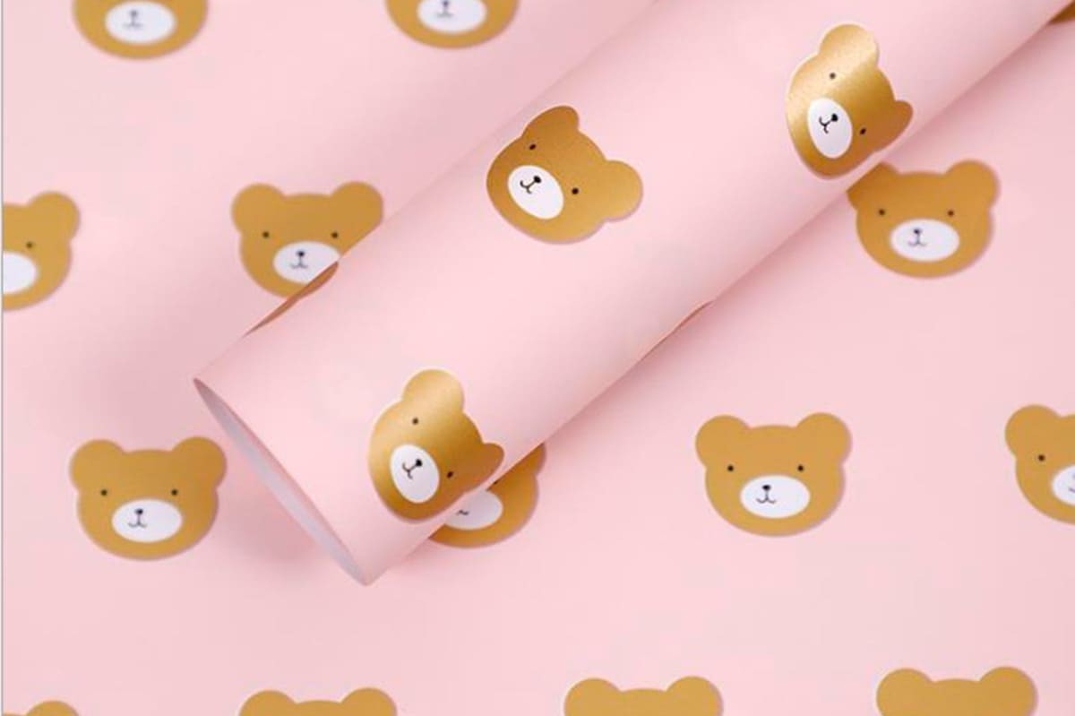 Корейская пленка однотонная "Мишки" Размер: 58 см*10 м Цвет: Розовый
