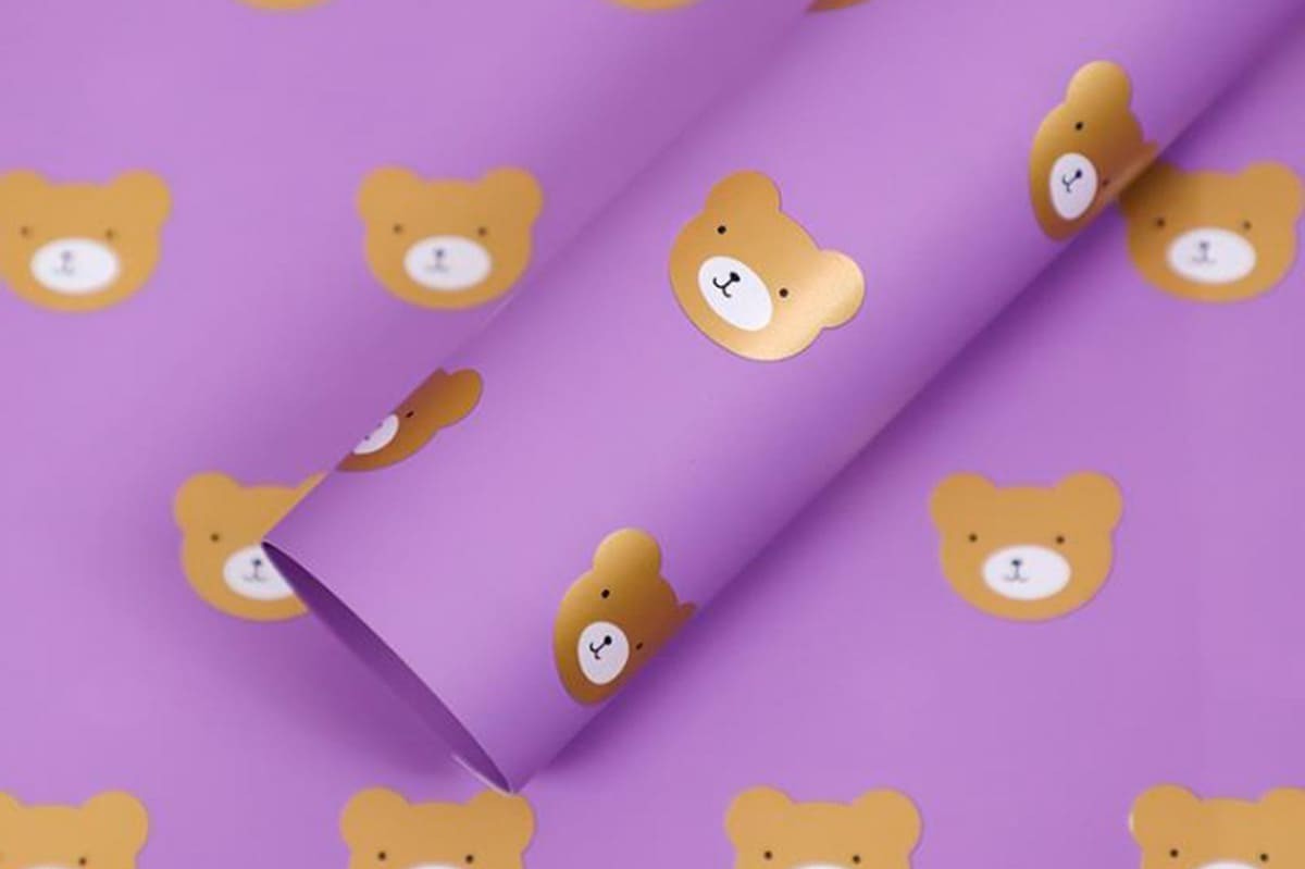 Корейская пленка однотонная "Мишки" Размер: 58 см*10 м Цвет: Сиреневый