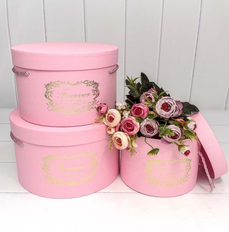 Коробки Круглые "Forever Love You" Набор 3 шт. Размер: 25,1 см*15,5 см; 22 см*14 см; 19 см*13 см Цвет: Розовый