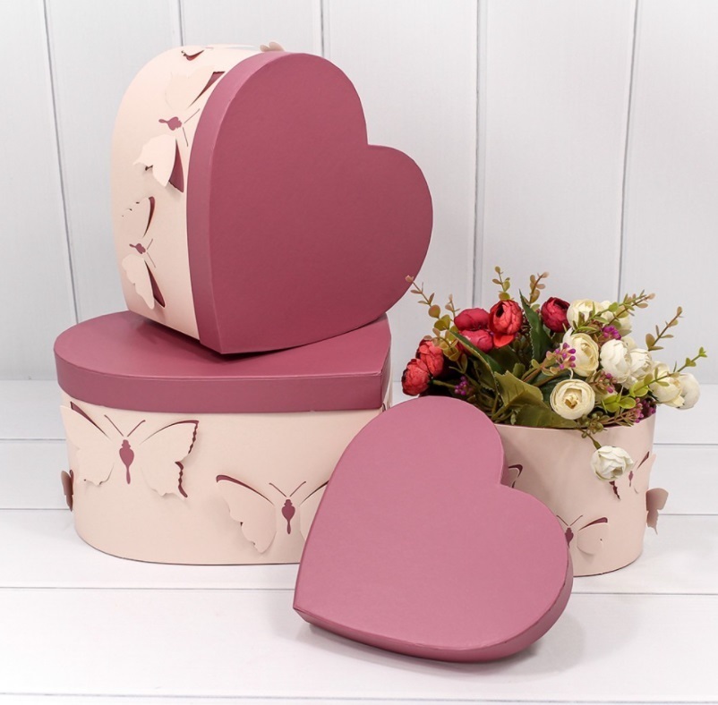 Коробки Сердца "Бабочки" Набор 3 шт Размер: 28,5 см*26 см*15 см; 25 см*23 см*13; 22 см*20 см*11 см Цвет: Бежевый