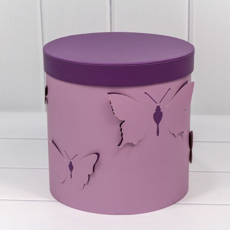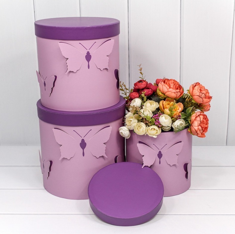 Коробки Цилиндр "Бабочки" Набор 3 шт Размер: 21,5 см*21,5 см; 19,5 см*19,5 см; 17,5 см*17,5 см Цвет: Сиреневый