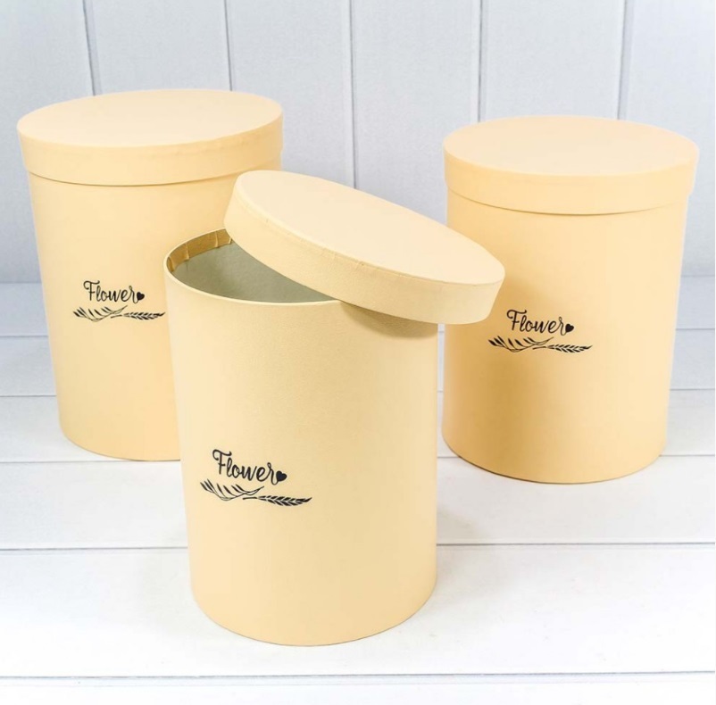 Коробки Цилиндр "Flower" Набор 3 шт Песочный