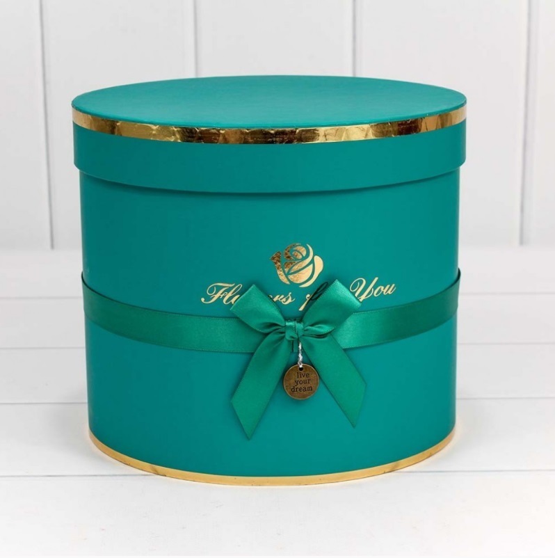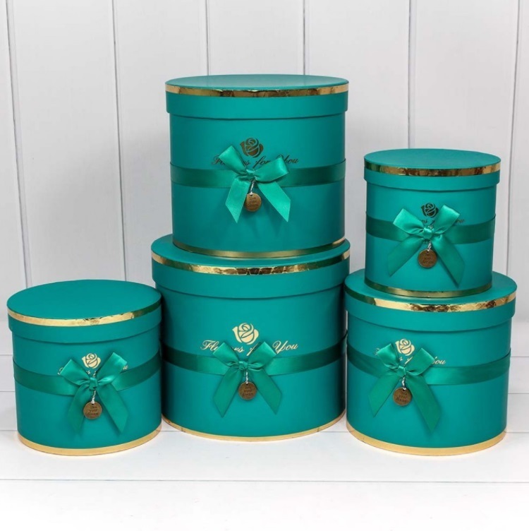Коробки Цилиндр "Flowers for you" Набор 5 шт. Размер: 22,5 см*19,5 см; 20,5 см*18 см; 18,5 см*16,5 см; 16,5 см*15 см; 14,5 см*13,5 см Цвет: Изумрудный
