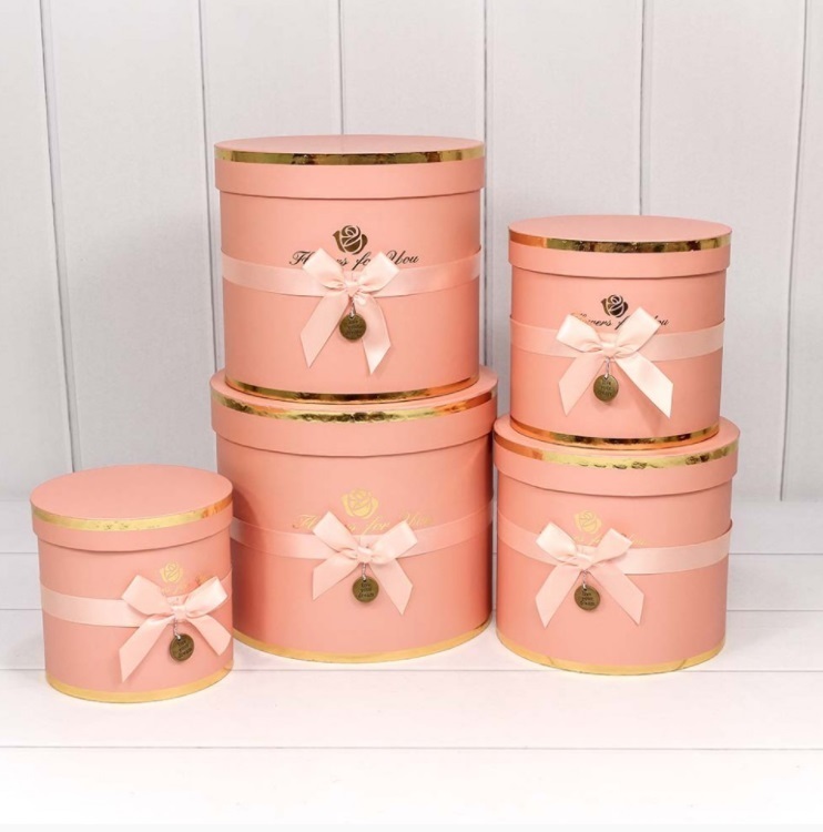 Коробки Цилиндр "Flowers for you" Набор 5 шт. Размер: 22,5 см*19,5 см; 20,5 см*18 см; 18,5 см*16,5 см; 16,5 см*15 см; 14,5 см*13,5 см Цвет: Персиковый