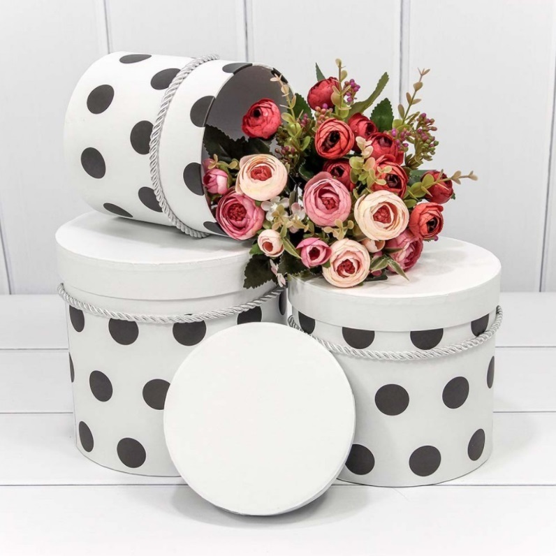 Коробки Цилиндр "Горох" Набор 3 шт Белый