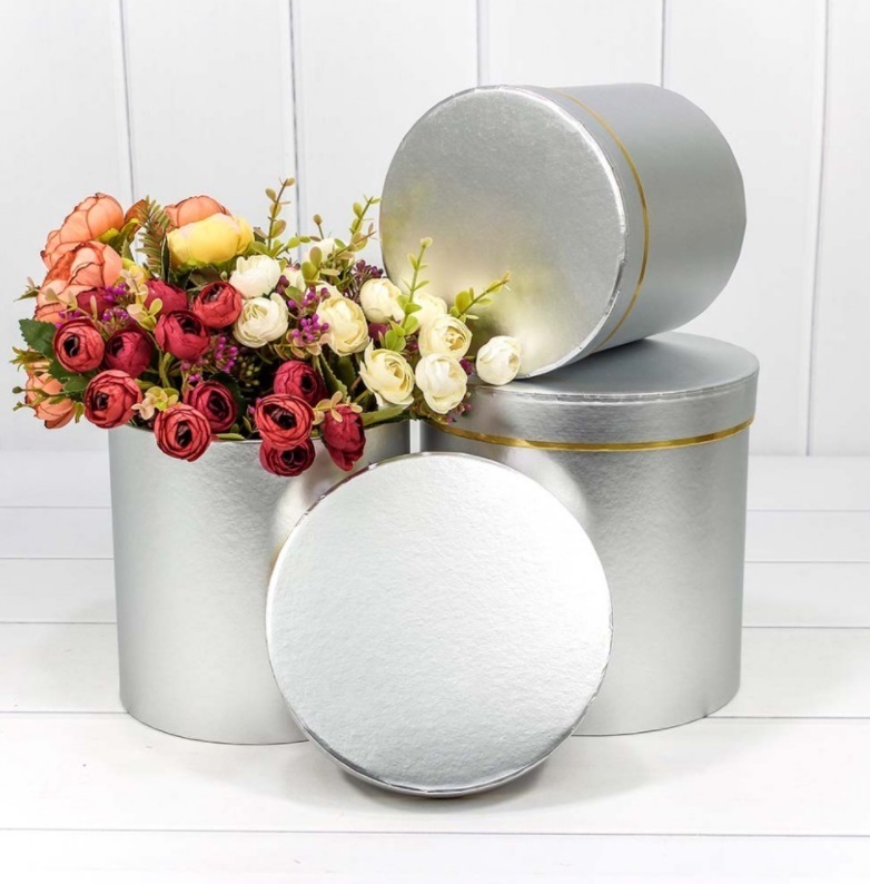 Коробки Цилиндр "Металл" Набор 3 шт Серебряный
