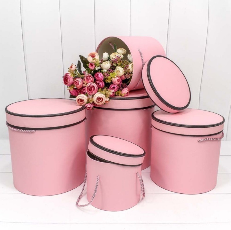 Коробки Цилиндр Набор 5 шт. Размер: 25 см*25 см; 23 см*23 см; 21 см*21 см; 18 см*19 см; 14 см*17 см Цвет: Розовый