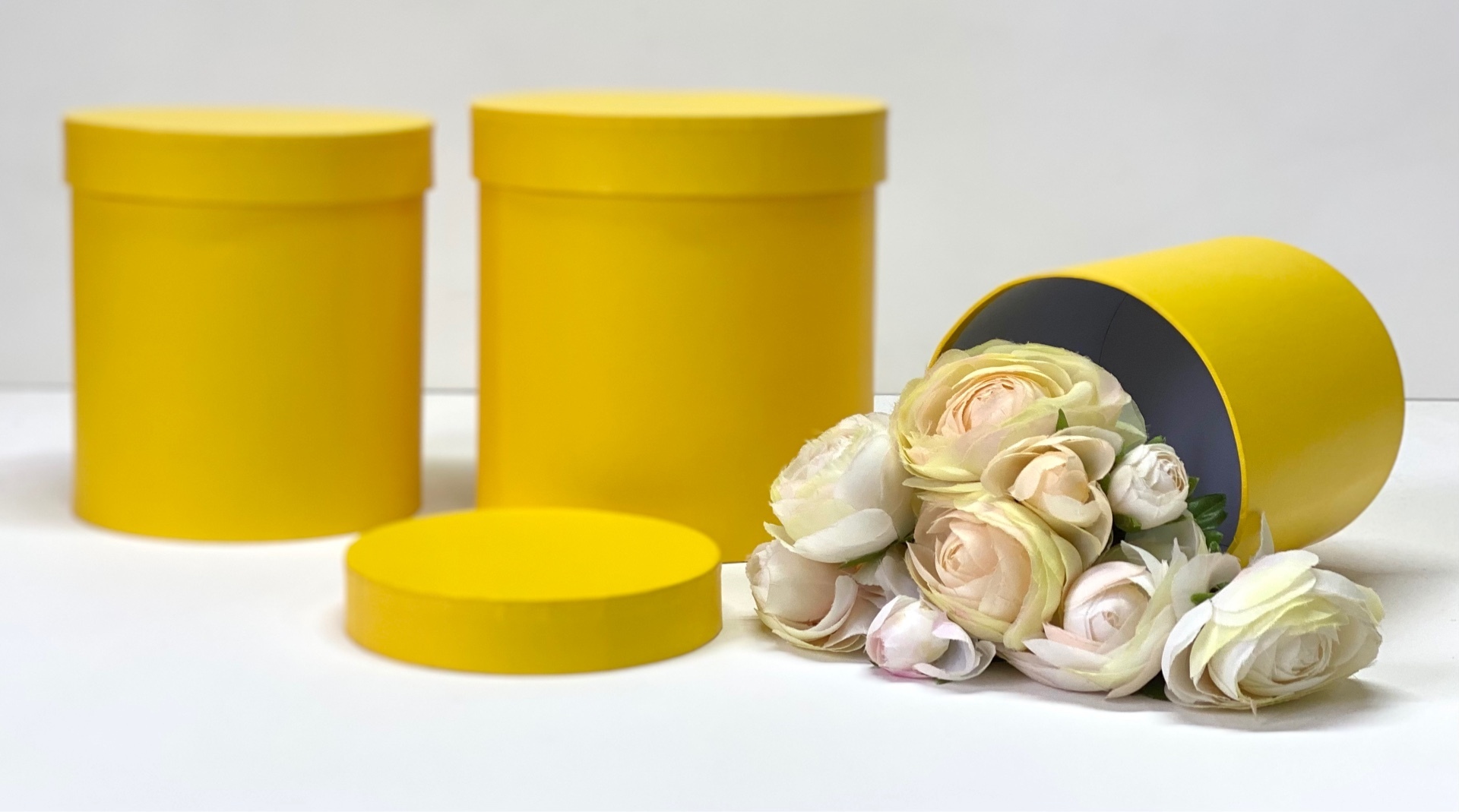 Коробки Цилиндр Однотонные. Набор 3 шт. Горчичные