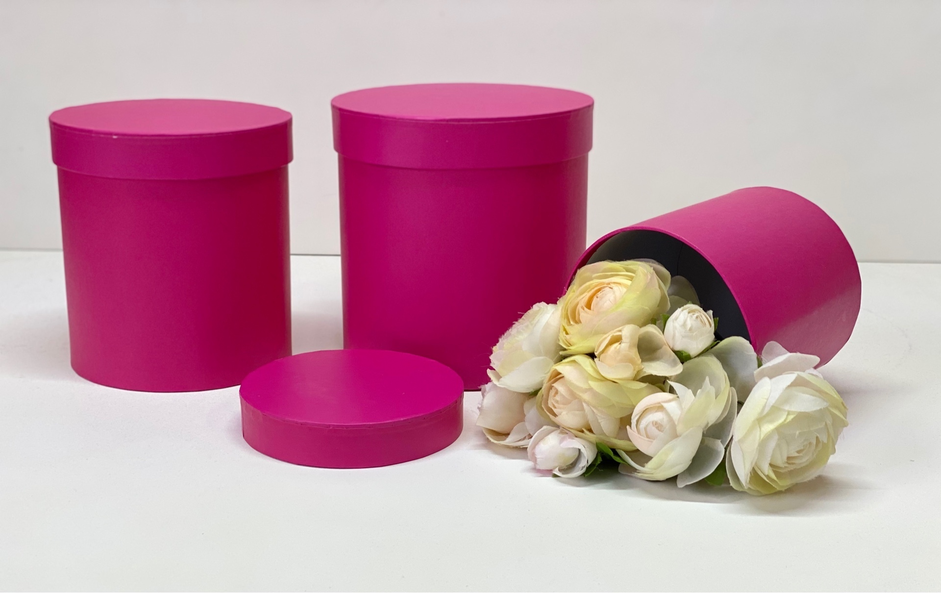 Коробки Цилиндр Однотонные. Набор 3 шт. Малиновые