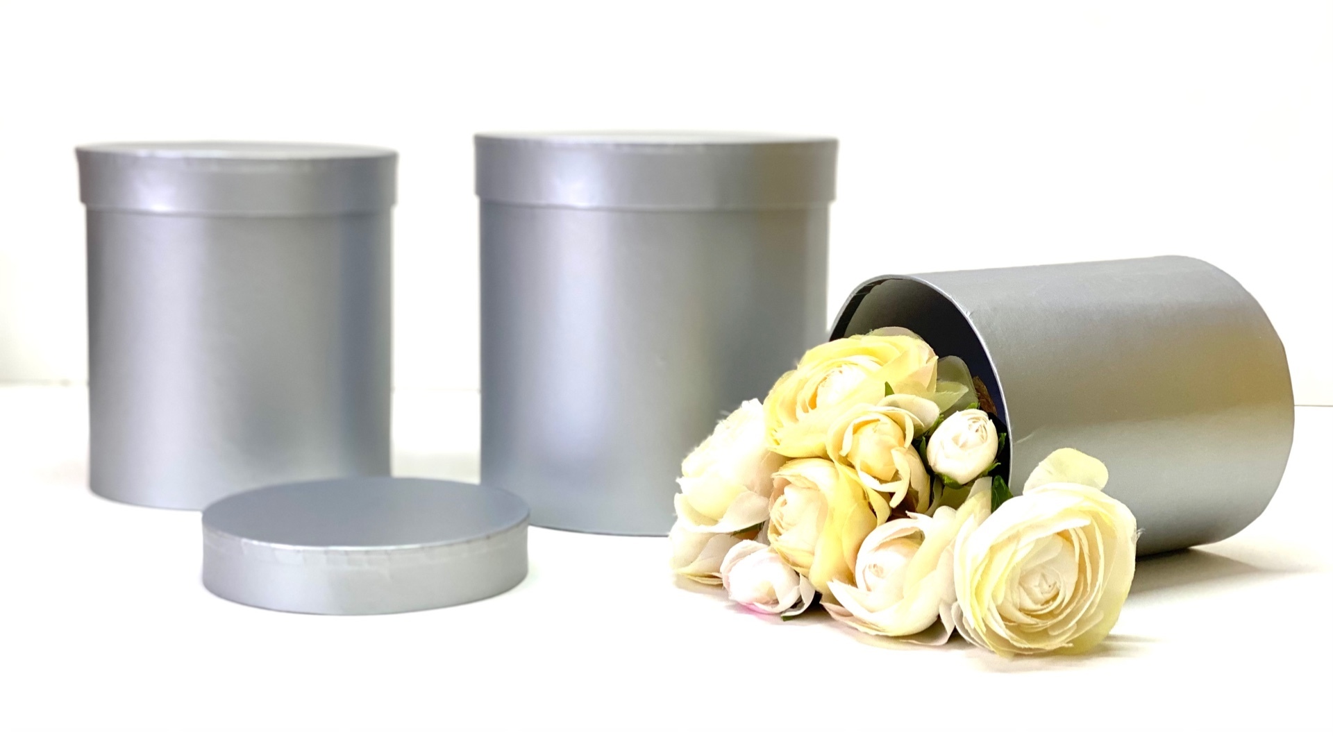 Коробки Цилиндр Однотонные. Набор 3 шт. Серебро