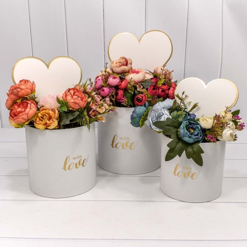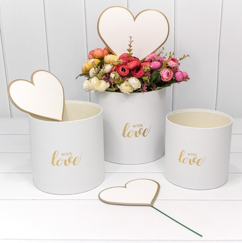 Коробки Цилиндр "С сердечком" Набор 3 шт Белый