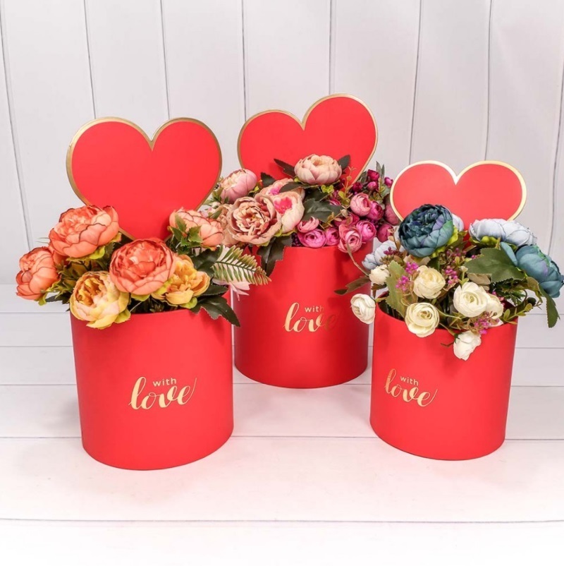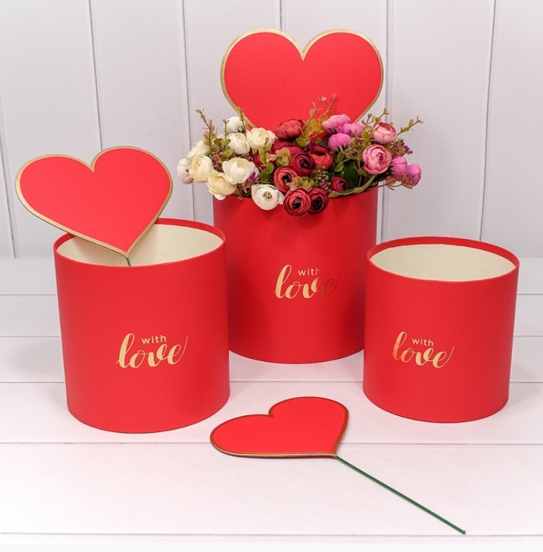 Коробки Цилиндр "С сердечком" Набор 3 шт Красный