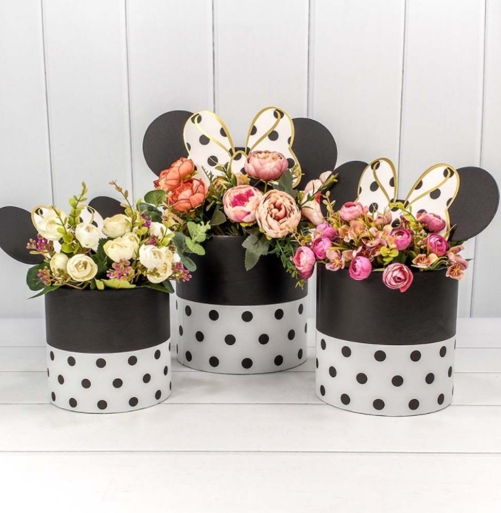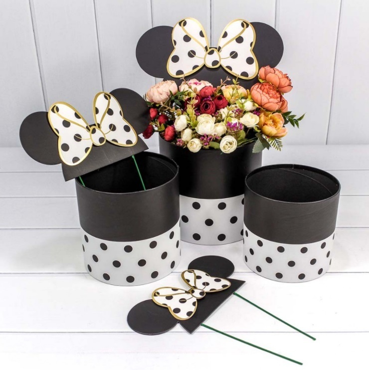 Коробки Цилиндр "С ушками" Набор 3 шт. Размер: 19 см*19 см; 17 см*17 см; 15 см*14,5 см Цвет: Бело-чёрный