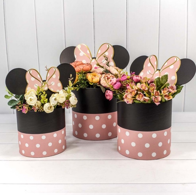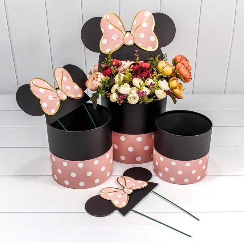 Коробки Цилиндр "С ушками" Набор 3 шт Розово-чёрный