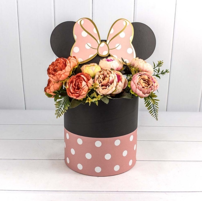 Коробки Цилиндр "С ушками" Набор 3 шт. Размер: 19 см*19 см; 17 см*17 см; 15 см*14,5 см Цвет: Розово-чёрный