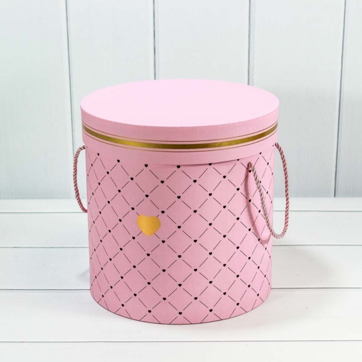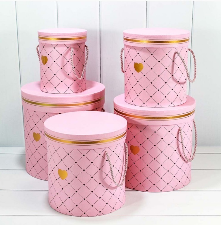 Коробки Цилиндр "Сердечки" Набор 5 шт Размер: 24,5 см*24,5 см*25 см; 23 см*23 см*23 см; 21 см*21 см*21 см; 18 см*18 см*19 см; 14 см*14 см*17 см Цвет: Розовая