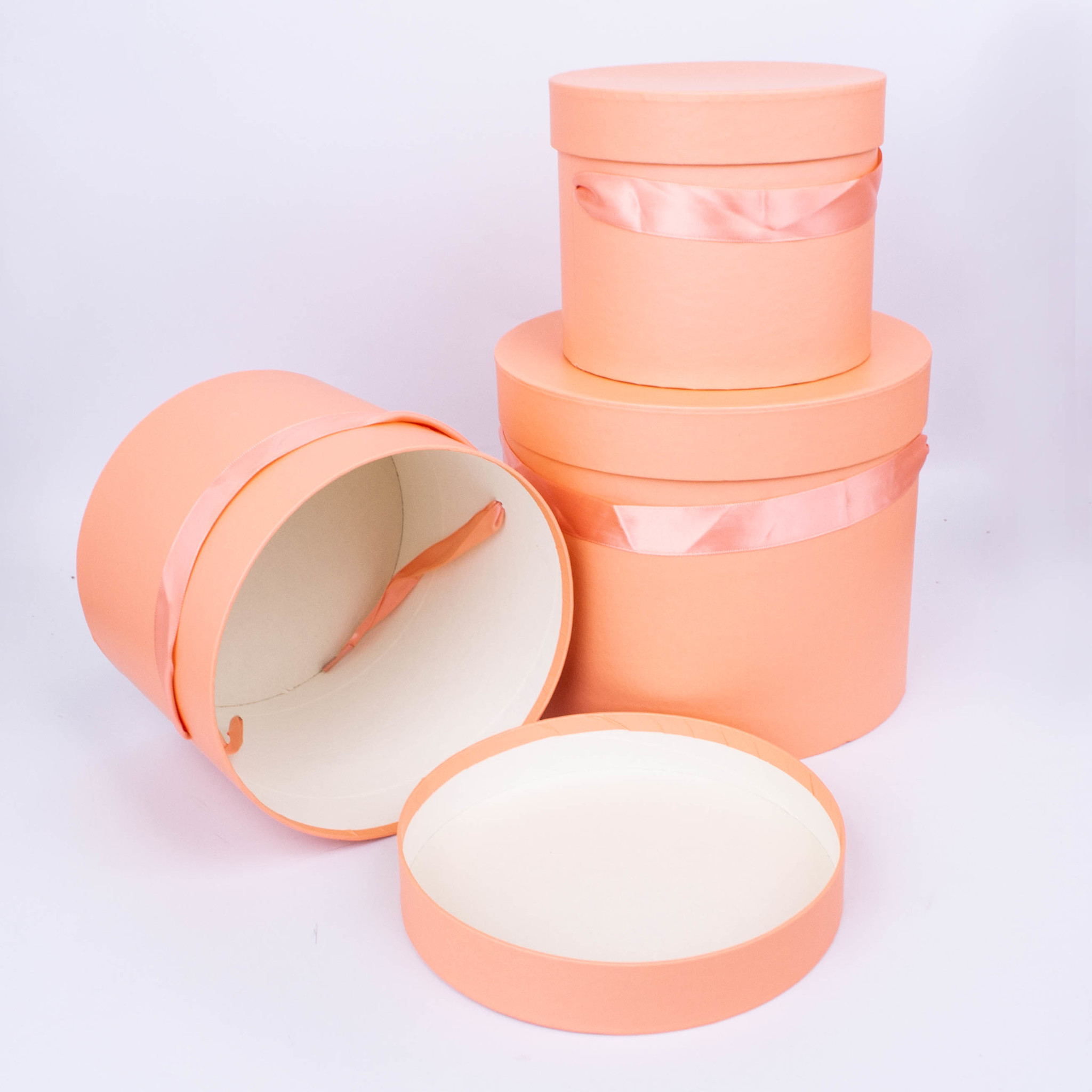 Коробки Тубус однотонный с лентой. Набор 3 шт. Размер: 23 см*19,5 см; 20 см* 17 см; 17 см*14 см. Цвет: Персиковый