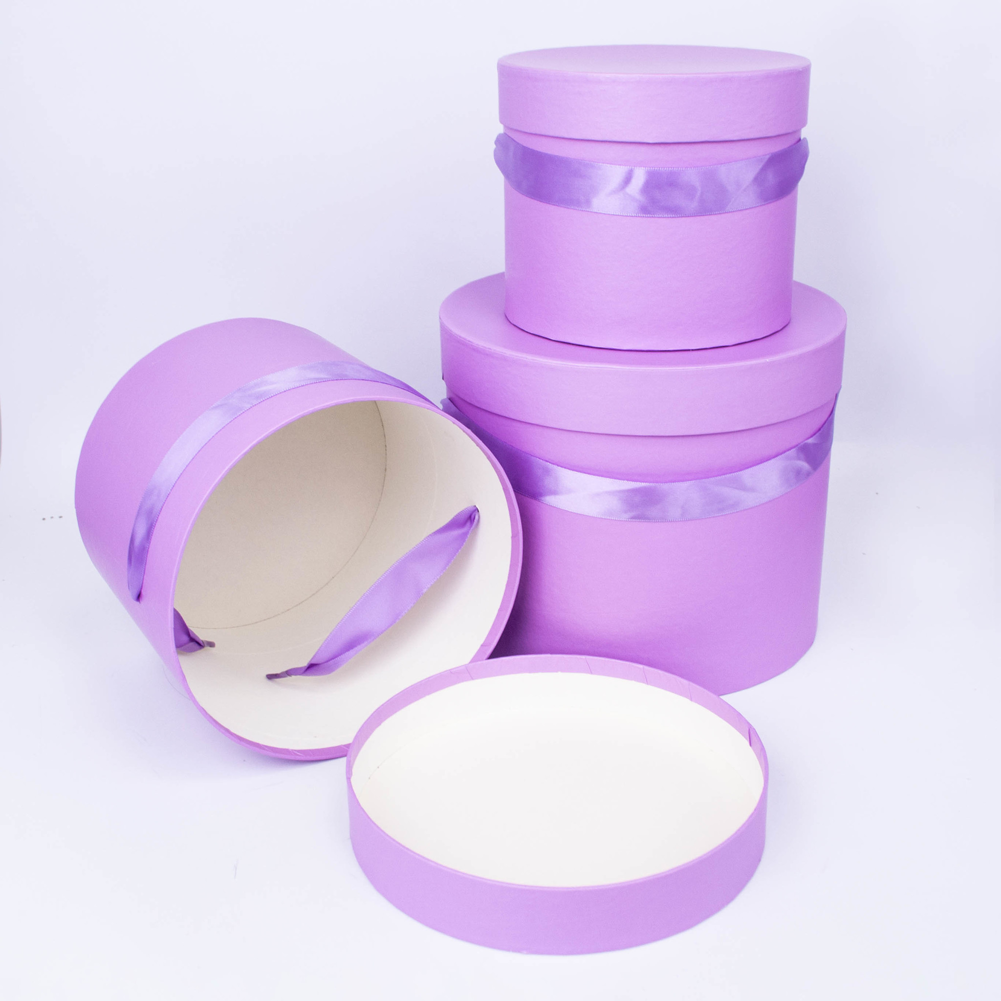 Коробки Тубус однотонный с лентой. Набор 3 шт. Размер: 23 см*19,5 см; 20 см* 17 см; 17 см*14 см. Цвет: Сиреневый