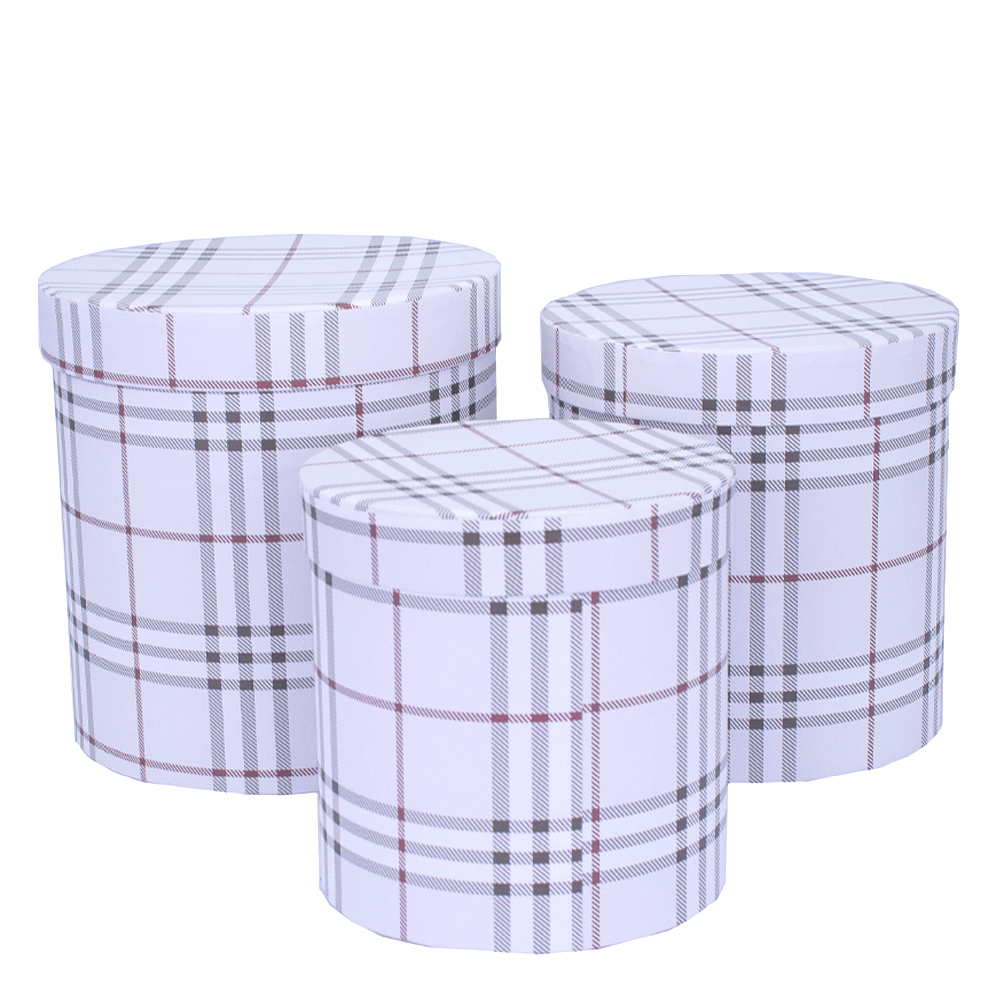 Коробки Тубус "Шотландская клетка" Набор 3 шт Размер: 19,5 см*19 см ; 17,5 см*17 см; 15,5 см*15 см Цвет: Белый