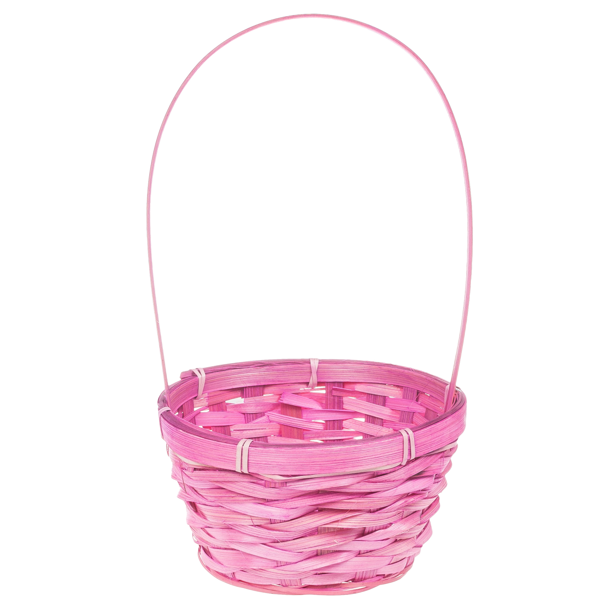 Плетеная корзина "Бамбук" с ручкой, диаметром: 22 см. Цвет: Розовый