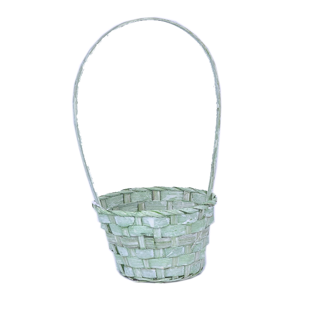 Плетеная корзина "Бамбук" с ручкой, диаметром: 13 см. Цвет: Темно-Зеленый