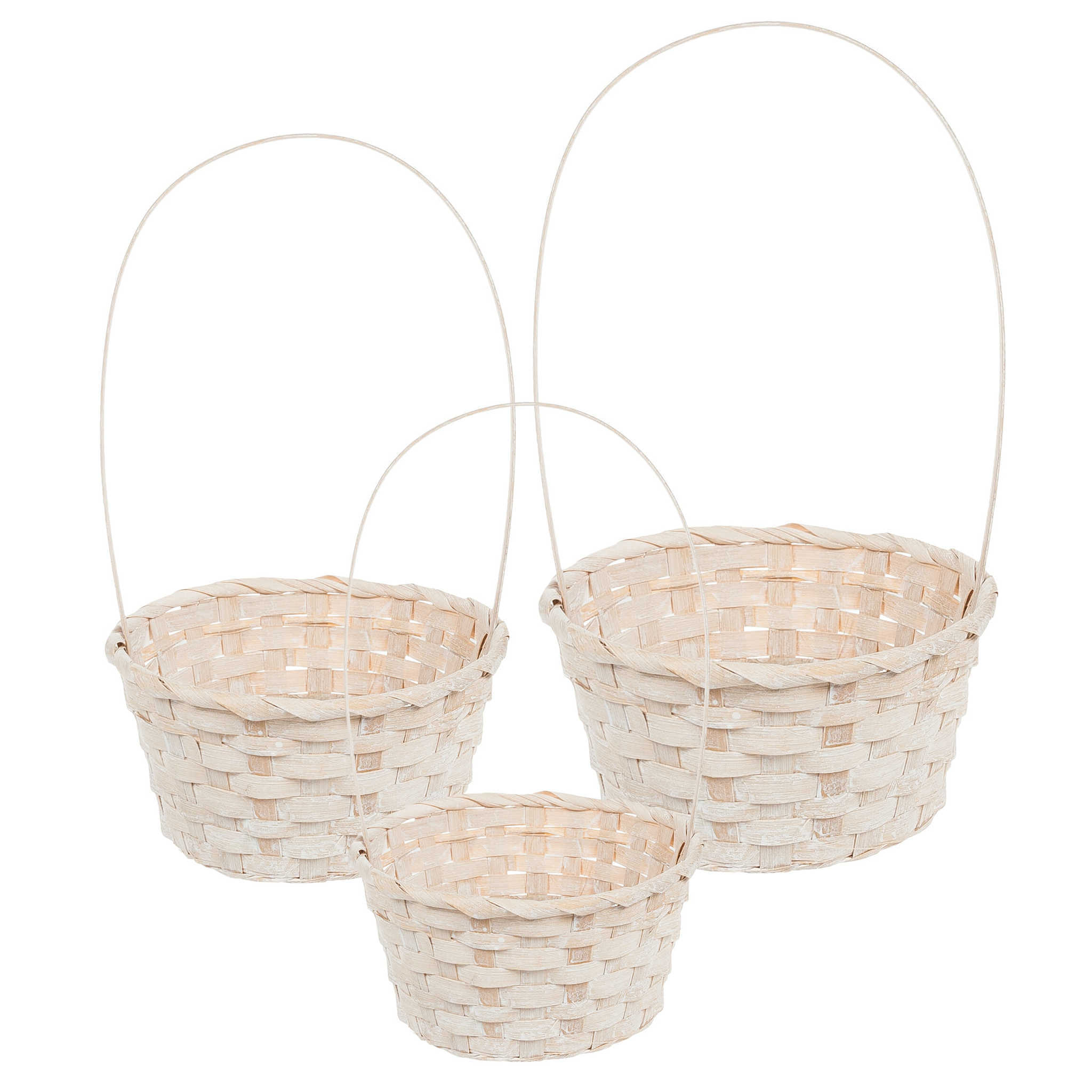 Плетеныё корзины "Бамбук". В набор входят 3 круглые корзины с ручкой, диаметром: 21 см; 18 см; 16 см. Цвет: Натуральный