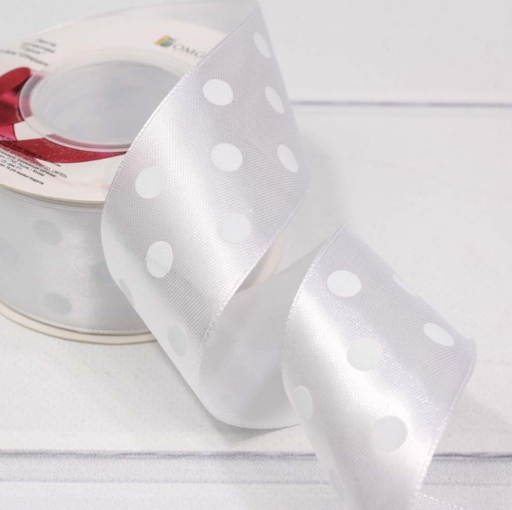 Лента Атласная Горох Размер: 3,8см*25ярд Цвет: Белый
