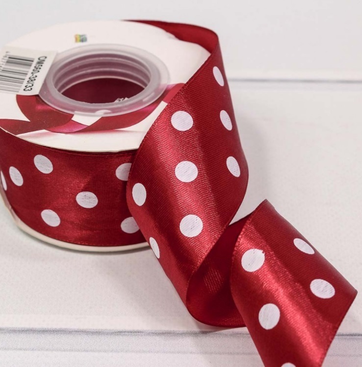Лента Атласная Горох Размер: 3,8см*25ярд Цвет: Бордовый