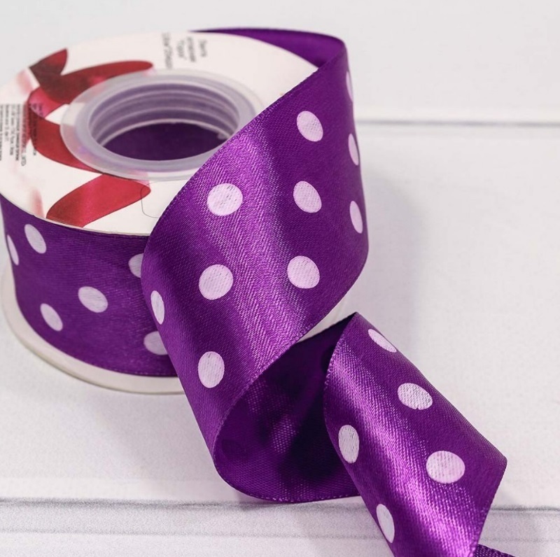 Лента Атласная Горох Размер: 3,8см*25ярд Цвет: Фиолетовый