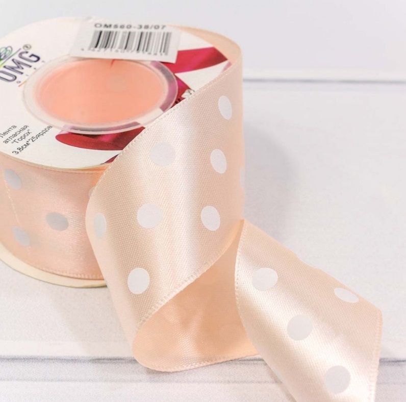 Лента Атласная Горох Размер: 3,8см*25ярд Цвет: Персиковый