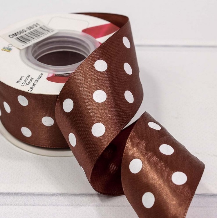 Лента Атласная Горох Размер: 3,8см*25ярд Цвет: Шоколадный
