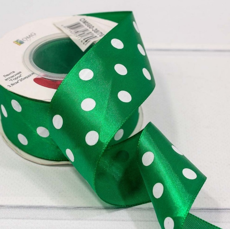 Лента Атласная Горох Размер: 3,8см*25ярд Цвет: Ярко-зелёный