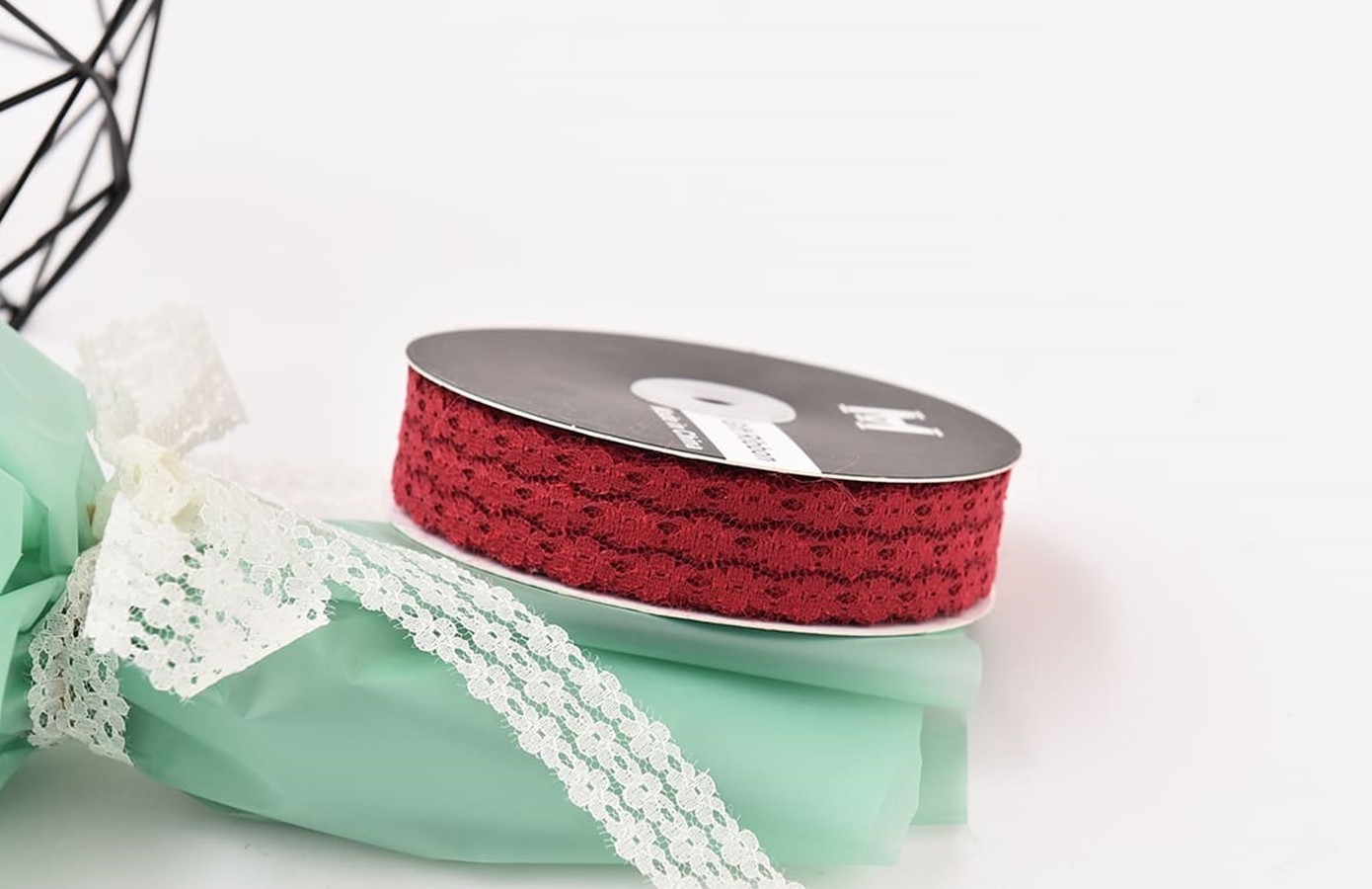Лента кружевная дизайн "3 Цветка" Размер: 2,5 см*35 ярд Цвет: Бордовый