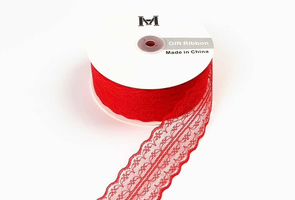 Лента кружевная дизайн "Полоса" Размер: 4,5 см*45 ярд Цвет: Красный