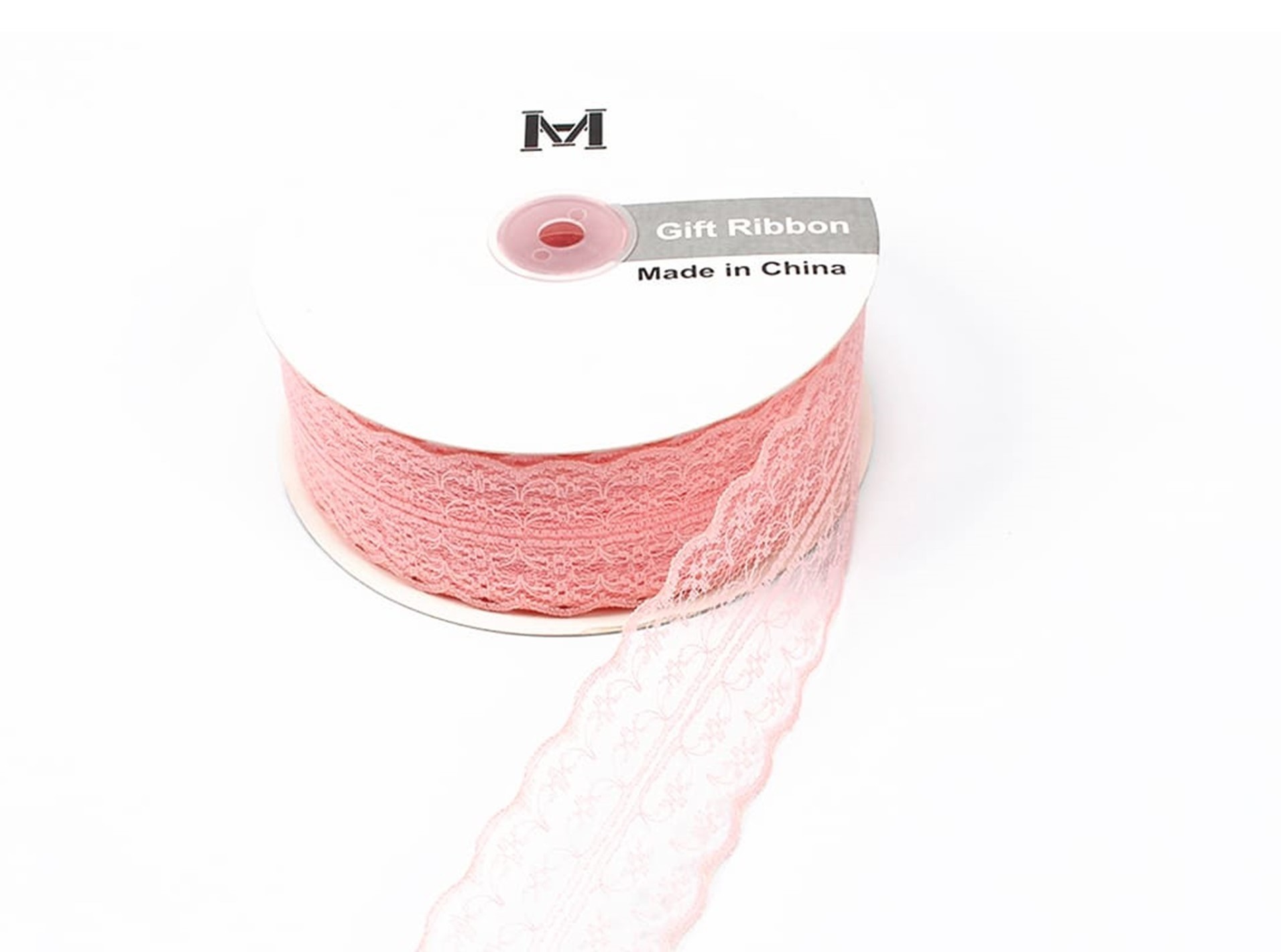 Лента кружевная дизайн "Полоса" Размер: 4,5 см*45 ярд Цвет: Нежно-розовый