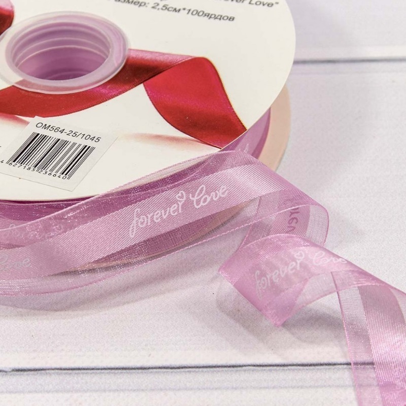 Лента Органза Размер: 2.5 смсм*100ярд Цвет:"Forever love" Сиреневый