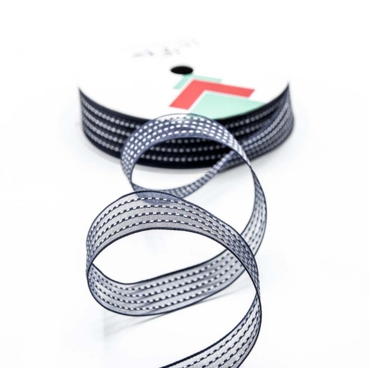 Лента органза в полоску (Люкс) Размер: 2,5 см*20 ярд Цвет: Тёмно-синий