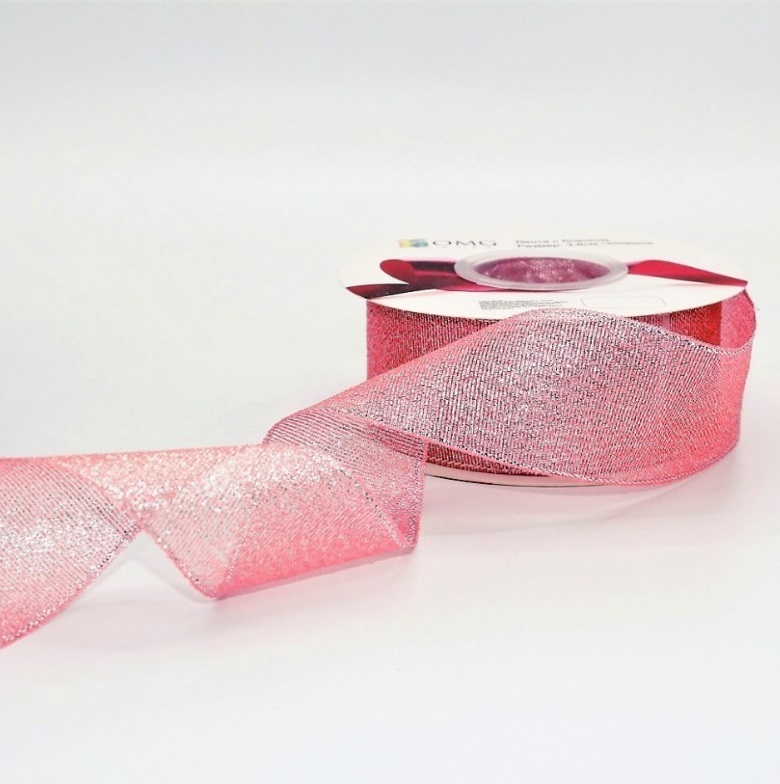 Лента Парча с блеском Размер: 3,8см*25ярд Цвет: Персиковый