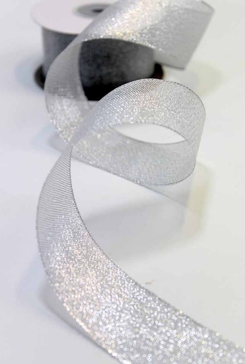 Лента Парча с блеском Размер: 3,8см*25ярд Цвет: Серебряный