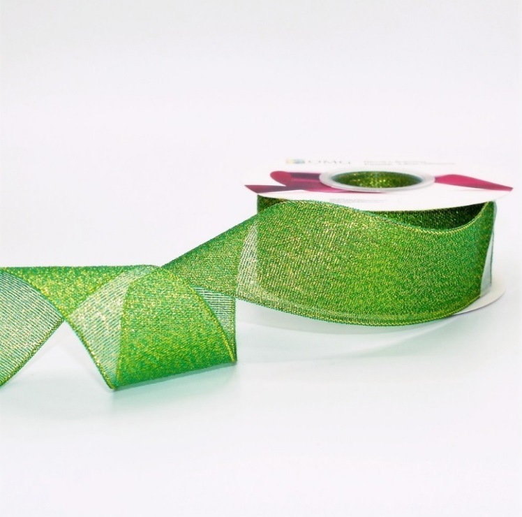 Лента Парча с блеском Размер: 3,8см*25ярд Цвет: Зеленый