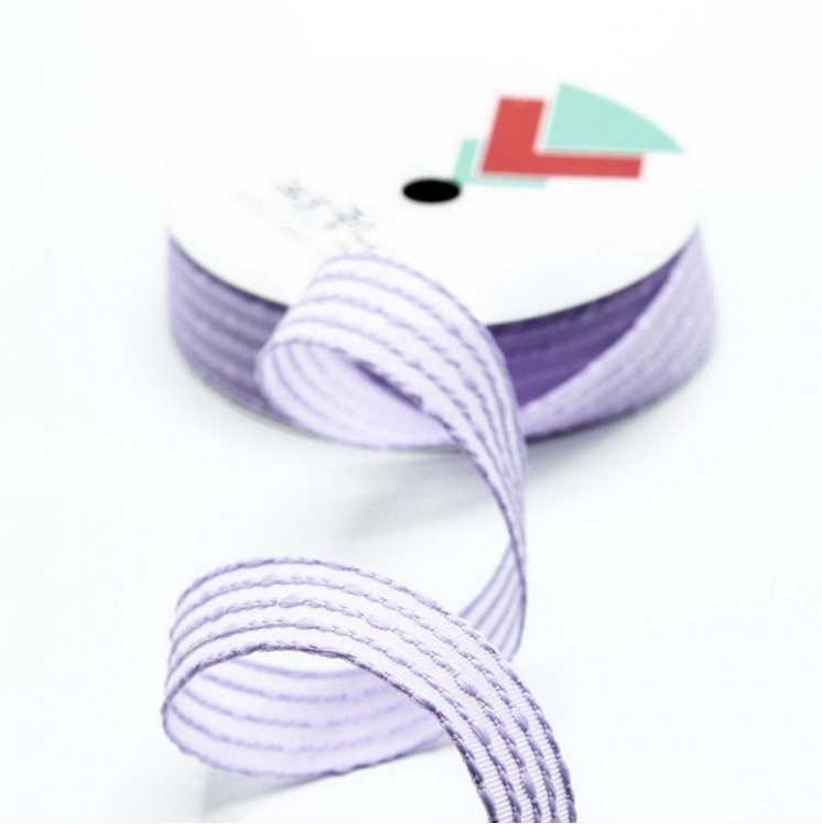 Лента Полиэстер в полоску Размер: 2,5см*18ярд Цвет: Сиреневый