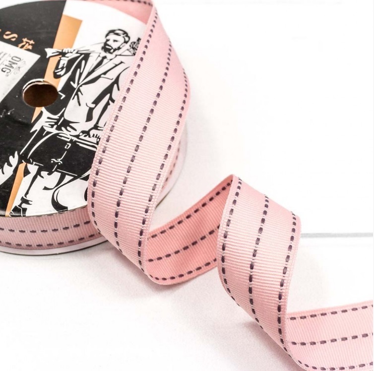 Лента Полиэстер в пунктирную полоску Размер: 2,6 см*20 ярд Цвет: Персиковый