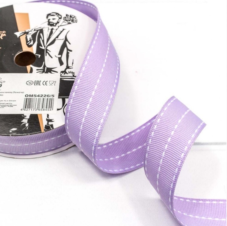 Лента Полиэстер в пунктирную полоску Размер: 2,6 см*20 ярд Цвет: Сиреневый