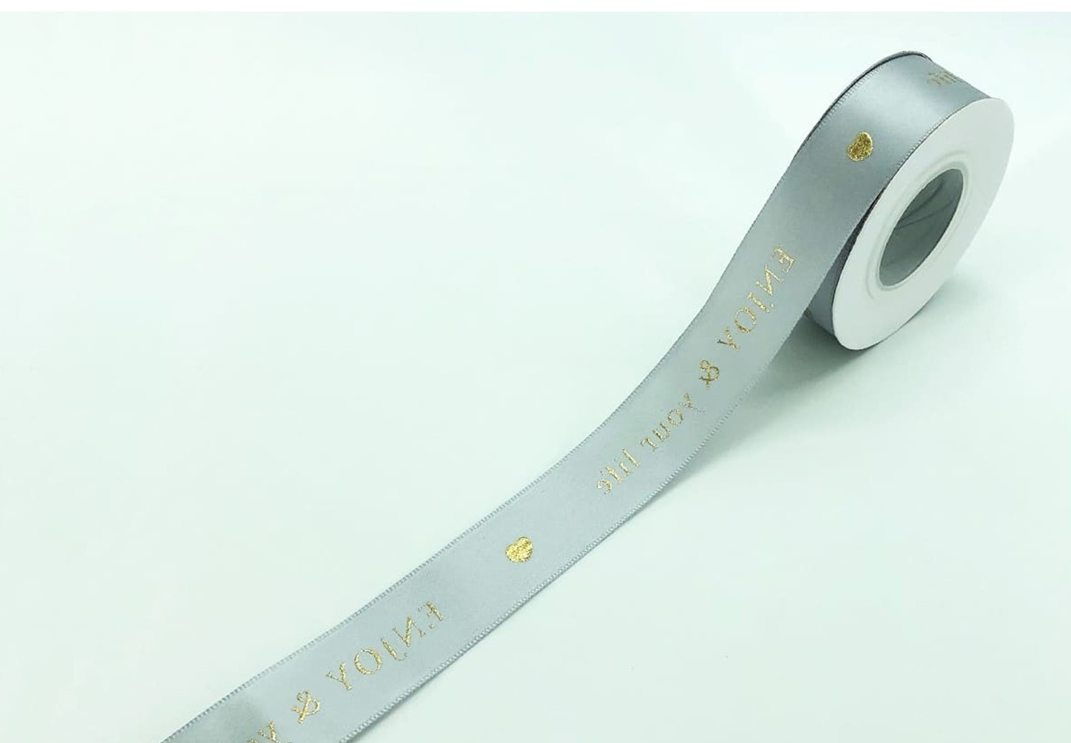 Лента с принтом на катушке "Enjoy" Размер: 25 мм*20 ярд Цвет: Светло-серый
