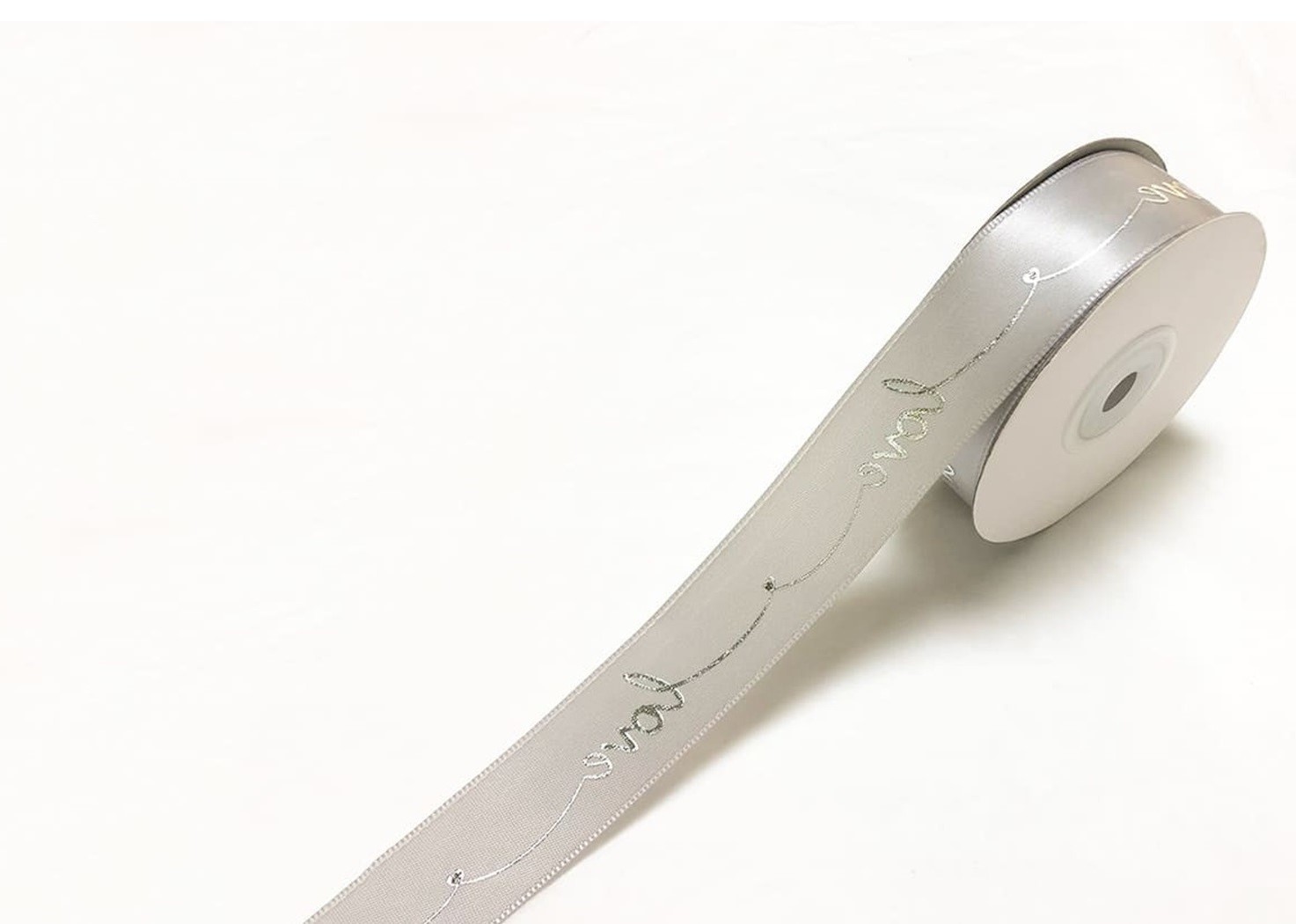 Лента с принтом на катушке "Love" Размер: 25 мм*20 ярд Цвет: Светло-серый