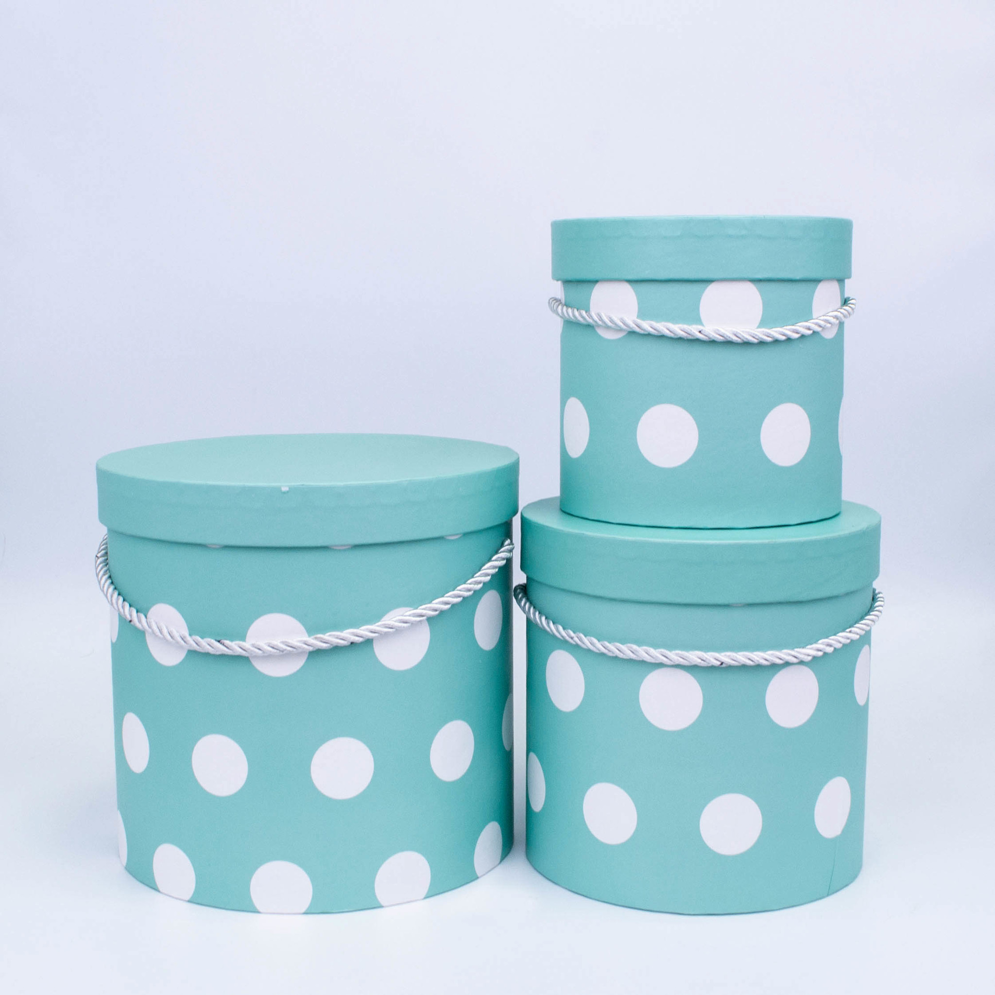 Коробки Тубус Горошек. Набор 3 шт. Размер: 18 см* 17.2 см; 15,5 см* 15 см;12 см*12,2 см. Цвет: Бирюза