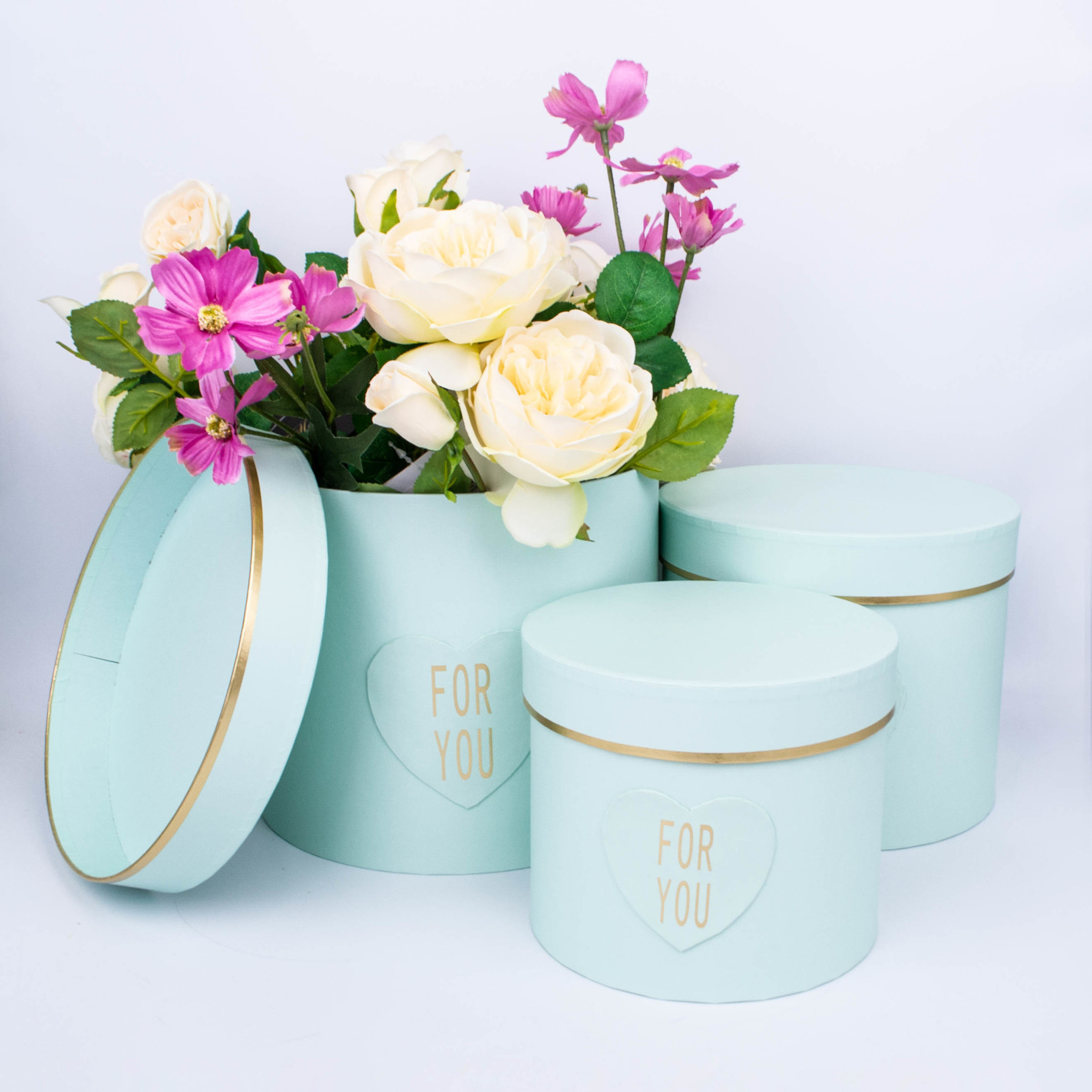 Коробки Тубус с Сердцем For you. Набор 3 шт. Размер: 23 см*19,5 см; 20 см*17 см;17 см*14 см. Цвет: Мятный