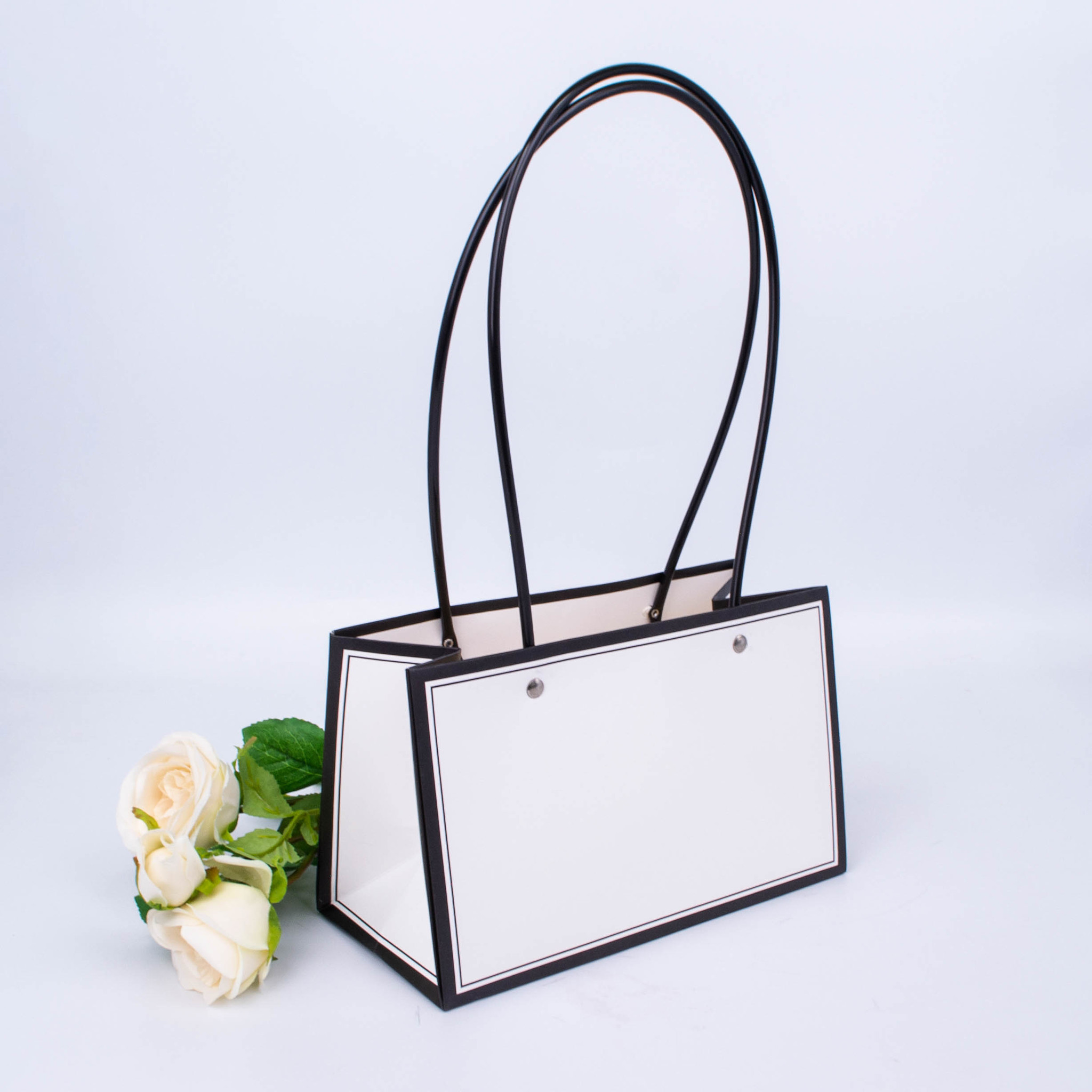 Пакет для цветов с черной окантовкой Размер: 14 см*11 см*22 см Цвет: Белый
